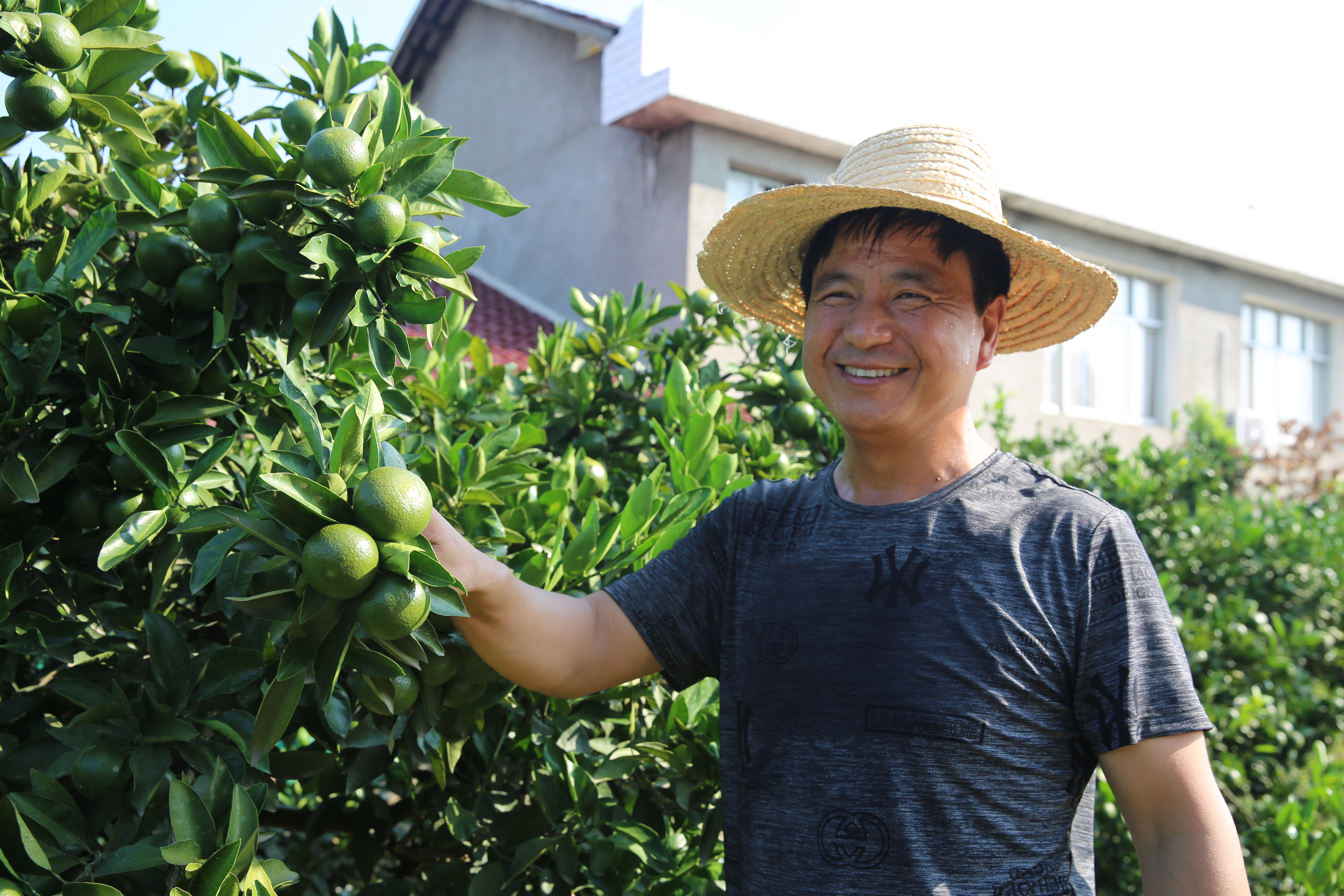 陳德滿橘園里,綠油油的柑橘掛滿枝頭,好像竊竊私語。人們的目光就被這些青澀可愛的小柑橘吸引住了。