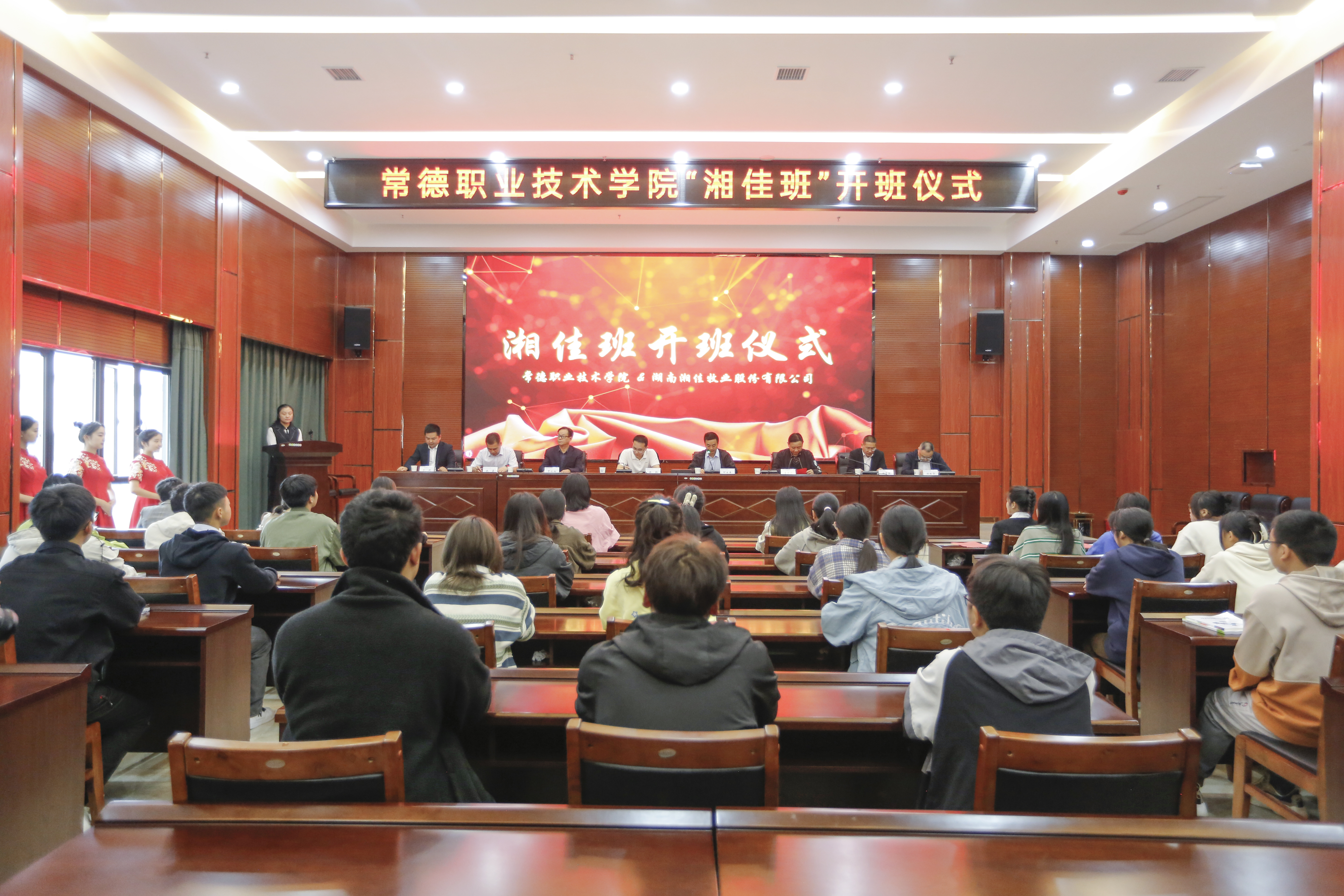 10月10日,湘佳股份與常德職業(yè)技術(shù)學(xué)院聯(lián)合開辦的首屆“湘佳班”開班儀式在常德職業(yè)技術(shù)學(xué)院會(huì)議廳舉行。常德職業(yè)技術(shù)學(xué)院黨委副書記徐翔、湘佳股份副總裁兼董事會(huì)秘書何業(yè)春、總裁助理兼文化部部長(zhǎng)賀欣初出席開班儀式,學(xué)院相關(guān)領(lǐng)導(dǎo)、專業(yè)教師、湘佳班全體學(xué)生以及湘佳股份導(dǎo)師代表參加開班儀式。