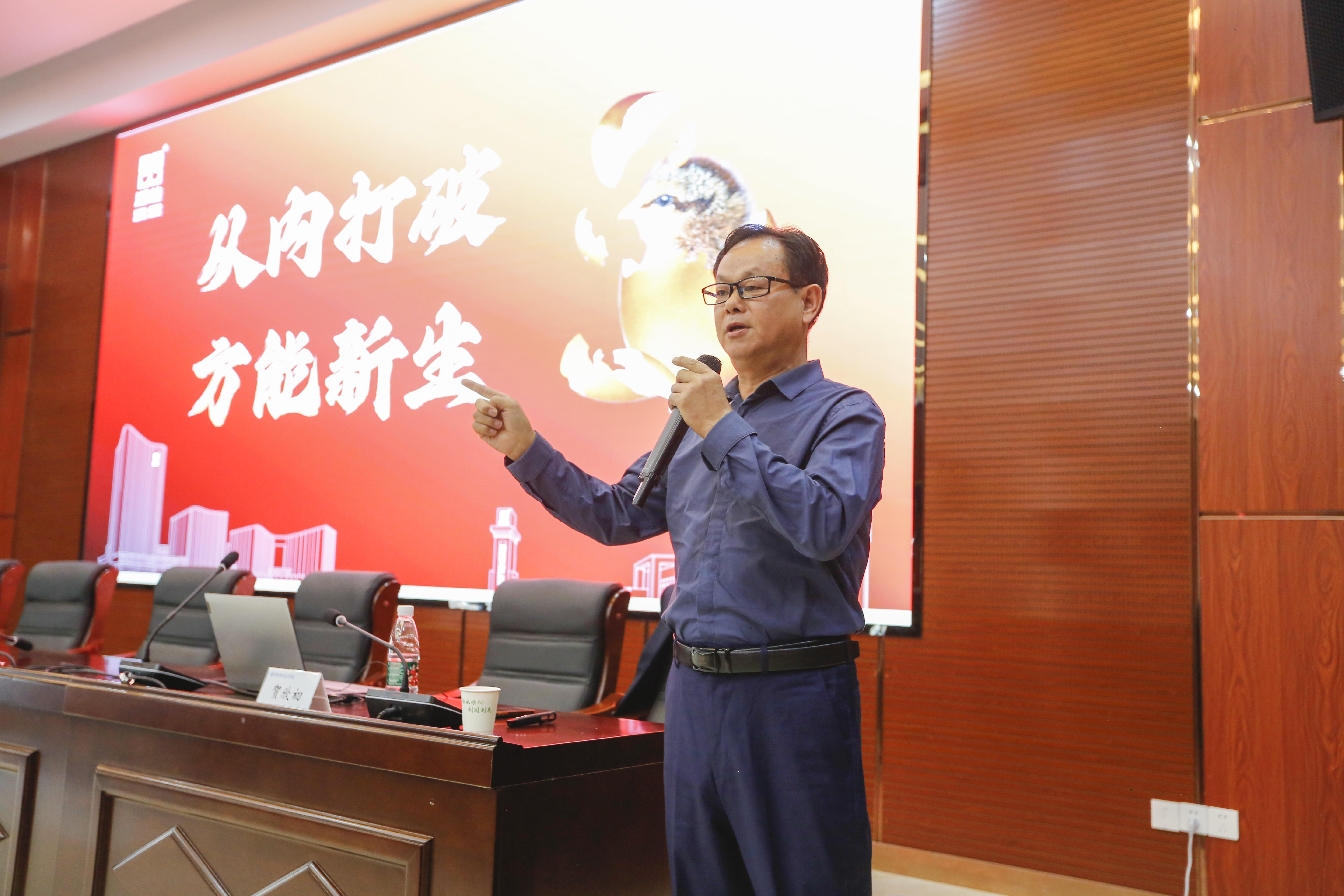 在“湘佳班”開班第一課上,湘佳股份總裁助理兼文化部部長(zhǎng)賀欣初以“從內(nèi)打破,方能新生”為主題,開展了企業(yè)文化講座。